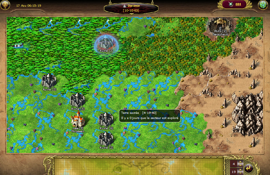 Visiblement l’explosion avait secoué le mage qui mit quelques minutes avant de reprendre totalement ses esprits. Il expliqua alors qu’ils avaient trouvé un moyen de localiser le paradis perdu New Heaven grâce à une prophétie Dark !! Cette prophétie leur permit de sonder tous les royaumes autour de 4.19 pour y chercher New Heaven. Mais alors qu’aucun des déserts présents ne correspondaient à la description, les mages eurent l’idée d’utiliser le nombre porte bonheur de Demonessochka comme le suggérait la prophétie Dark. Ainsi ils concentrèrent tous leurs efforts sur ces coordonnées qu’ils venaient de constituer : 4.19.13. Et en lieu et place de ces chiffres symboliques pour DeusEX et Demonessochka, les mages ne trouvèrent pas New Heaven mais détectèrent une très forte puissance magique, si forte que le rituel s’emballa et fit exploser le laboratoire !