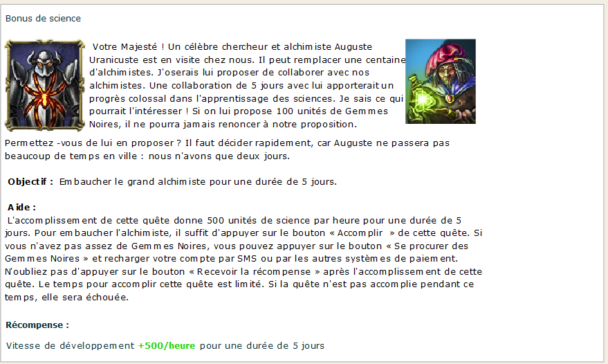 Je tiens à préciser que sur Venon beaucoup plus de quêtes donne des récompenses "sciences" par rapport aux autre serveur qui donne des récompenses "armée"