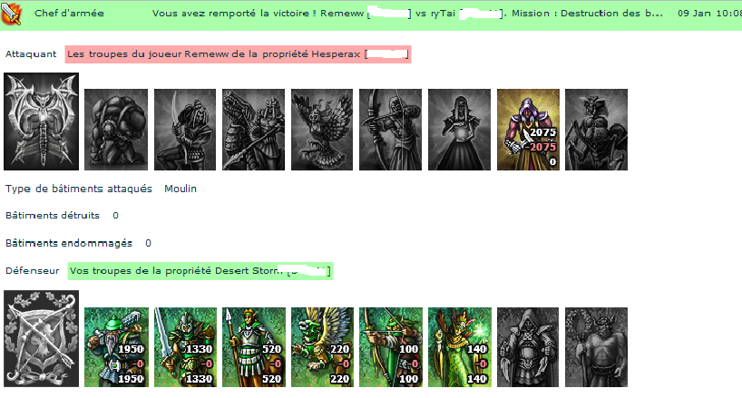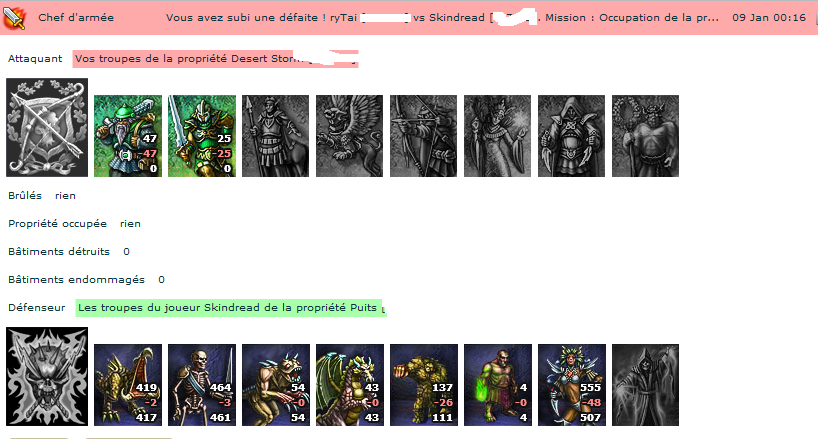 Alors pour l'ordre tu ma détruit mes guerrier dans le puits de hucblad avant que j'active la quette des 2000 mercenaires car je n'avais plus de troupes pour l'attaque massive de notre glorieuse revolutions qui se déroulais dans la soirée et que j'ai retiré a la dernière minute pour rien la révolution n'est pas aussi bien coordonnée que les troupes de notre tyran Rytai (si tu a les screen regarde bien en tout cas pour ceux qui me concerne)