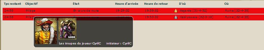 J'ai pu voir votre heure de retour ( bon tu avais déjà posté apparemment à 19h ) et sur Bakar dans la Taverne à 19h29( heure de l'impact ) ils ont mis votre rapport de combat. Vos troupes étaient encore sur le chemin du retour. ça ne dérange personne ???