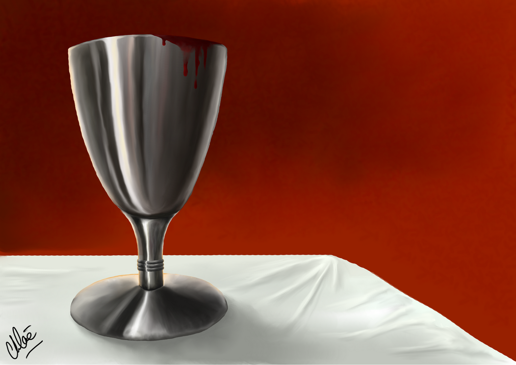 Allez hop un nouveau dessin, le dernier que j'ai fait (sans modèle donc pas top), un calice tout simple pour boire le sang fraichement récolté sur mes adversaires