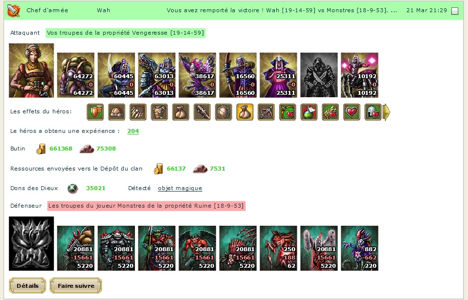 Sinon, pour ceux que ça intéresse, non je n'ai pas eu un Arté 3 comme celui des russes , l'épée + 30 degats troupes, ou le casque des cavaliers ou autre bon gros items a bonus !