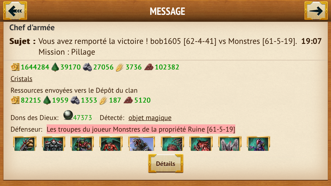 Le combat avait été ensuite qu’une formalité ! Un seul round avait suffit à maédbrinir pour mener les troupes à la victoires. Les monstres furent complètement détruits et leur héros monstre anéanti.
