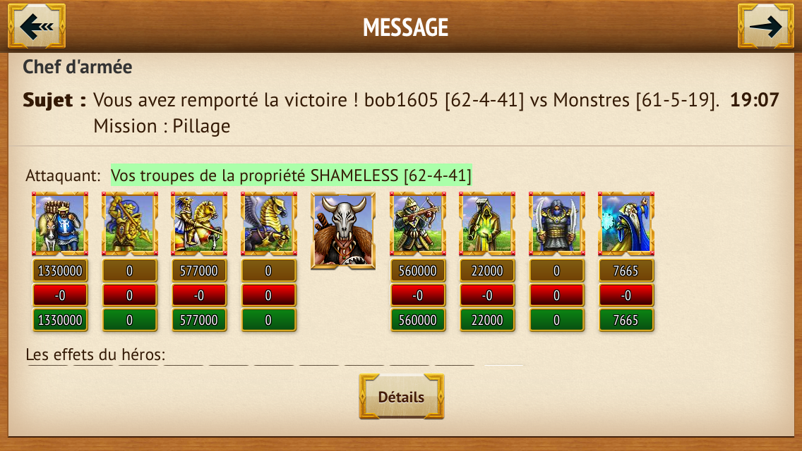 Le combat avait été ensuite qu’une formalité ! Un seul round avait suffit à maédbrinir pour mener les troupes à la victoires. Les monstres furent complètement détruits et leur héros monstre anéanti.