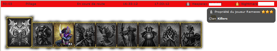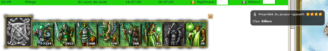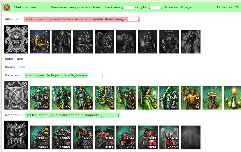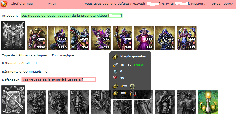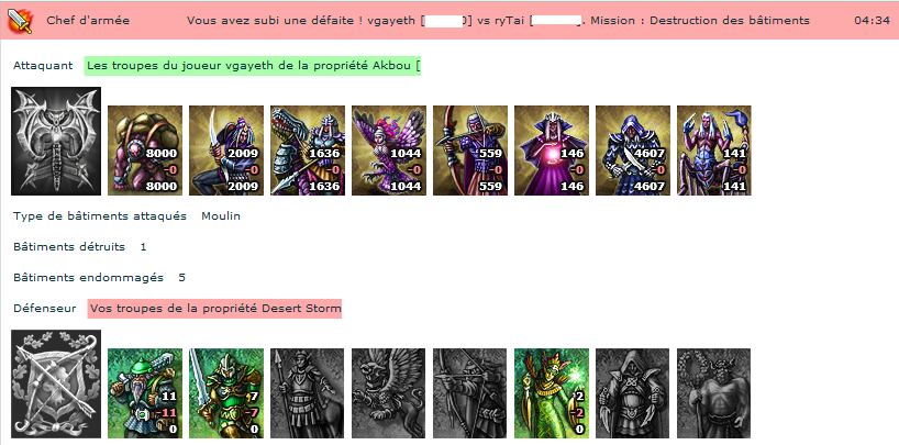 Alors pour l'ordre tu ma détruit mes guerrier dans le puits de hucblad avant que j'active la quette des 2000 mercenaires car je n'avais plus de troupes pour l'attaque massive de notre glorieuse revolutions qui se déroulais dans la soirée et que j'ai retiré a la dernière minute pour rien la révolution n'est pas aussi bien coordonnée que les troupes de notre tyran Rytai (si tu a les screen regarde bien en tout cas pour ceux qui me concerne)