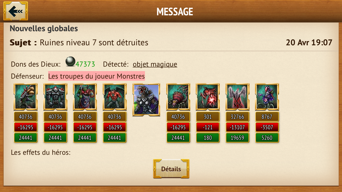Le combat avait été ensuite qu’une formalité ! Un seul round avait suffit à maédbrinir pour mener les troupes à la victoires. Les monstres furent complètement détruits et leur héros monstre anéanti.
