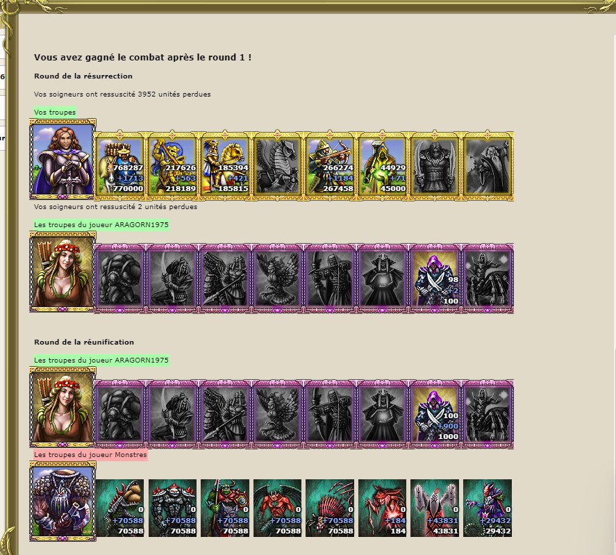 Malheureusement , les troupes d'ARAGORN étaient en repos..Il décida donc d'envoyer quelques mercenaires aguerris accompagnés de durbanette06 qui s'était équipée de sortilèges puissants et d'artéfacts renforçant les héros et les armées alliées et affaiblissant au maximun l'armée de monstres..