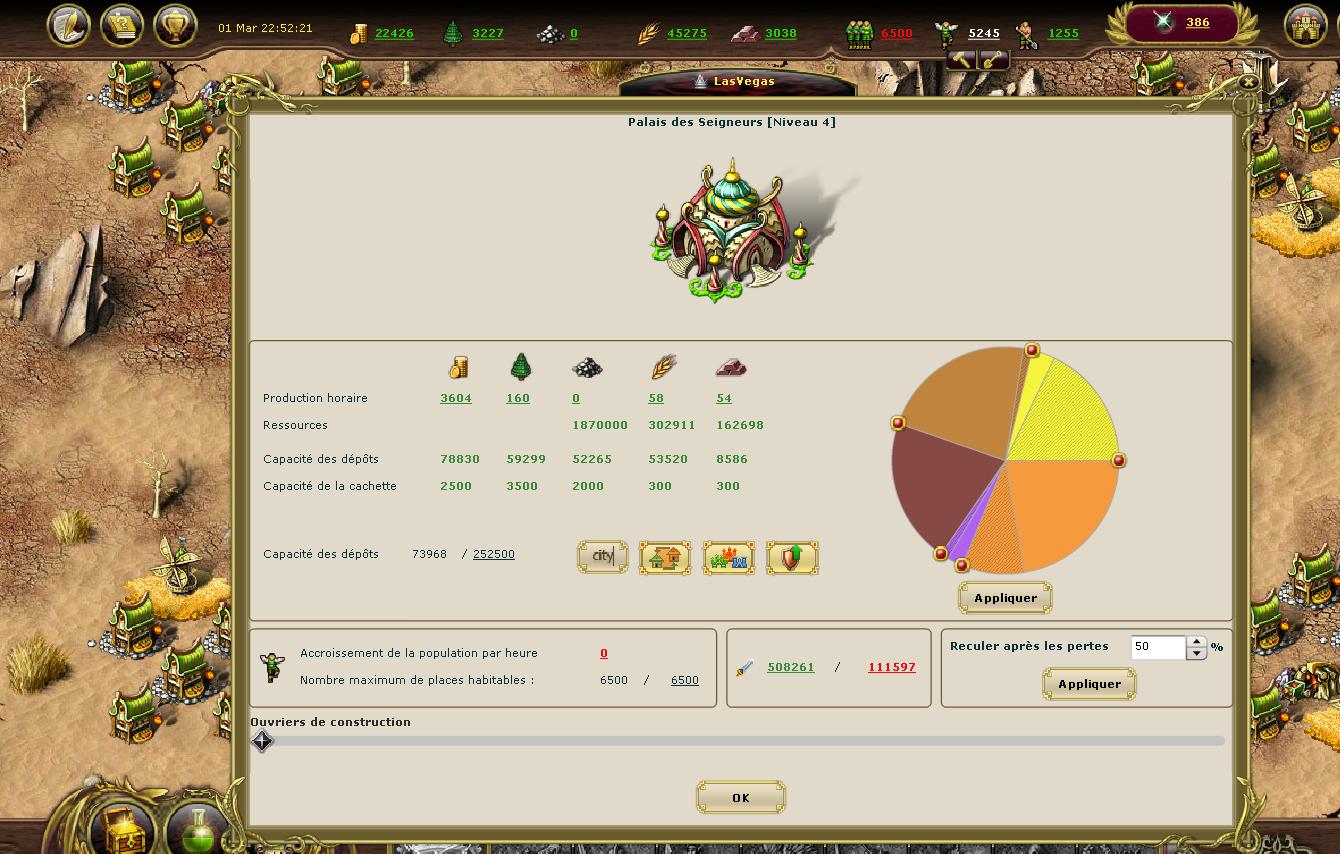 -Ensuite, tu va sur un désert, tu remplis les villages de comptoirs de commerce niveau 7 et tu met full maison au moins niveau 5 ( +1-2 tour et 1-2 fortif ) Tu te retrouve avec 10.000+ inactif, soit une énorme prod d'or normalement, encore plus si tu es chevalier, mais au vu de ce que je vois sur ton screen tu es démon ( coupain ( bref... ))